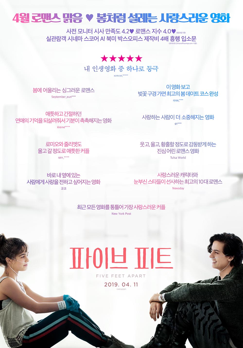 오늘 리뷰해볼 작품은 올해 개봉한 영화 '파이브 피트'입니다.