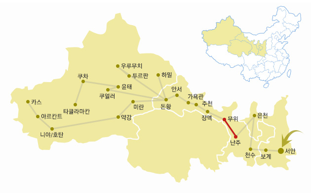 그 중에서 '천수'는 위 그림에서 보시는 것처럼 실크로드에 포함되어 있었기 때문에