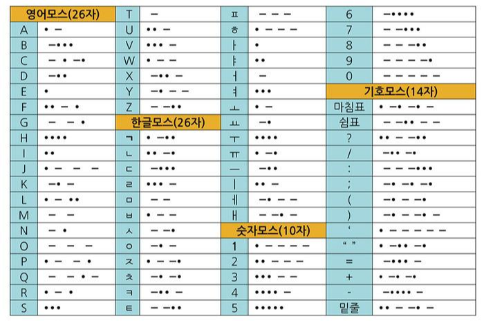 '모스부호'는 위기상황에 국제적으로 통할 수 있는 생존신호를 보낼 수 있다는 점에서