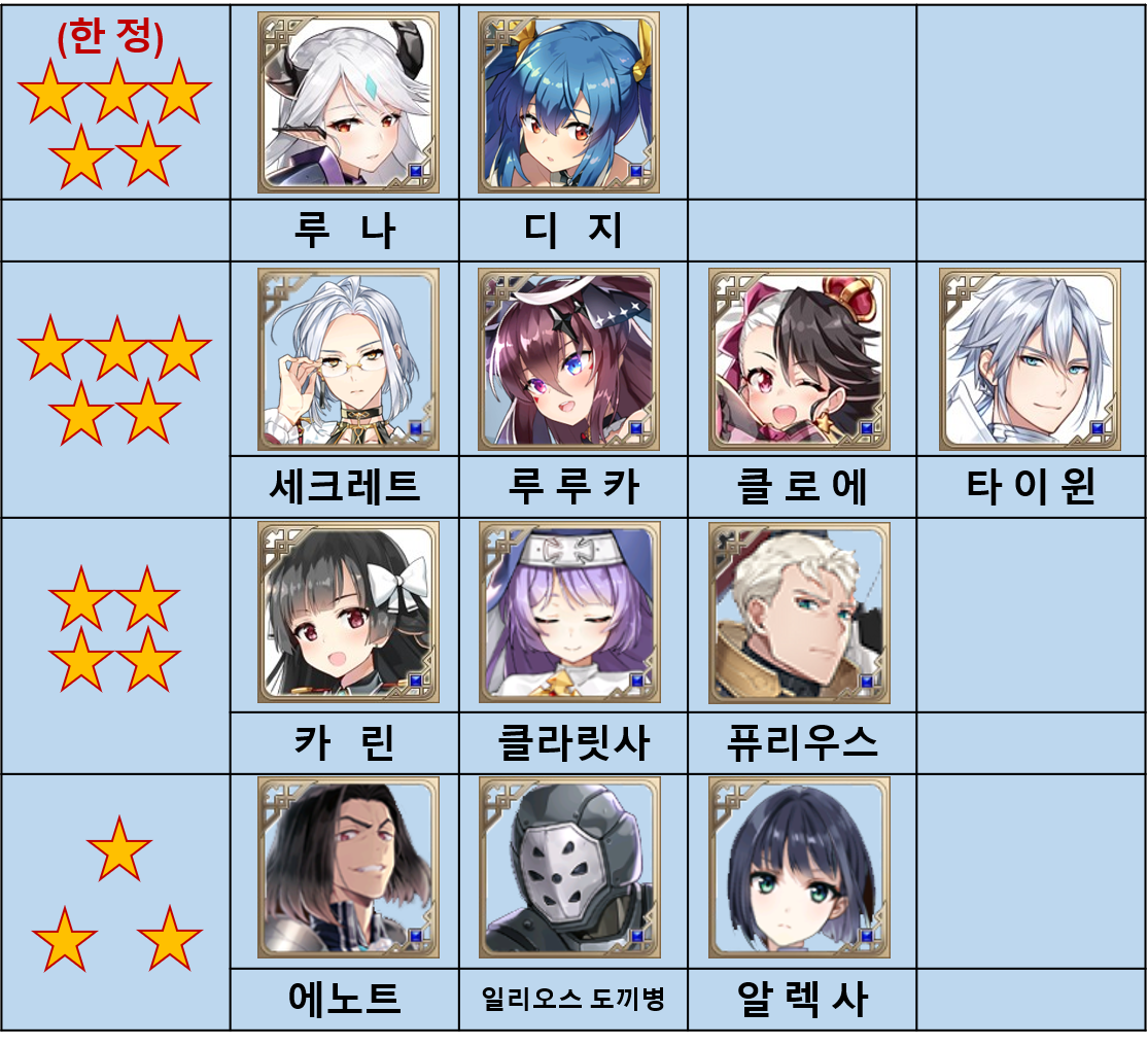 5성들은 대부분 쓸만합니다. 단순히 디버프용이 아니라 딜링도 출중하거든요.(클로에는 좀...)