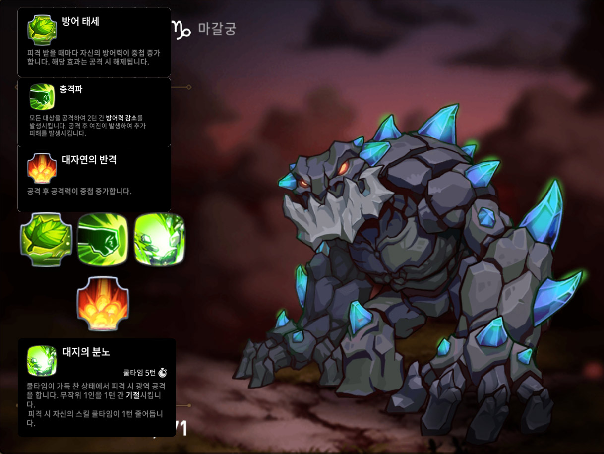 그래서 '골렘'은 사실 5번 피격을 당하면 턴에 상관없이 광역기를 줘서 조금 까다롭다고 볼 수 있죠.