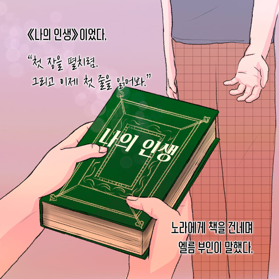 그리고 '노라'는 그 책을 읽는 행동만으로도 그 삶을 살 수가 있었죠.