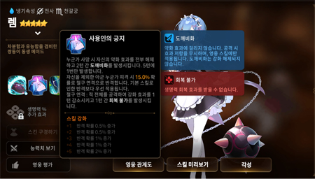 '렘'은 모든 스킬에 디버프가 있구요.