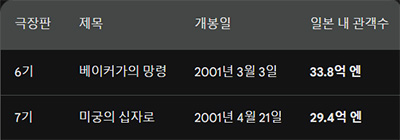 흥행수치만 본다면 6기가 약 4억엔, 40억원 정도 더 흥행했죠