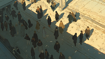 이 작품에서는 극단적으로 적은 색채가 사용되는 느낌이에요