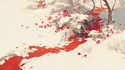 경하의 작업장에 남겨진 그녀의 피를 통해 붉은색을 강조해