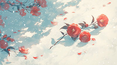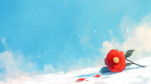 그 동백꽃의 붉은색과 그것과 대비될 흰색을 고른 것이라 보여요