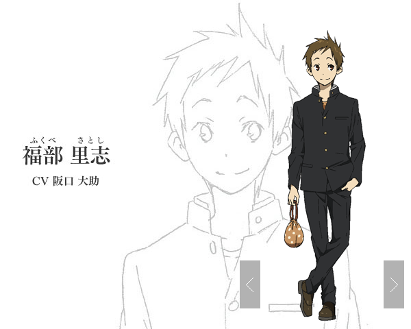 애니메이션 '빙과'와 원작인 소설 '고전부'시리즈에 등장하는 인물인 '후쿠베 사토시'는